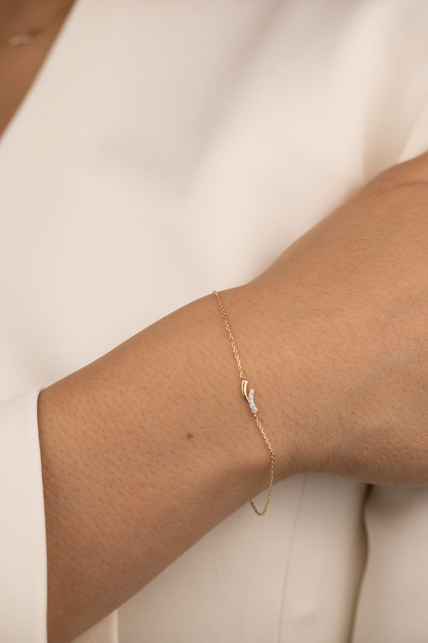 Feines Armband aus 585er Gold mit fünf funkelnden Zirkonia – verstellbare Länge, zarter Glanz und elegantes Design. Perfekt als Geschenk oder Alltagsbegleiter.