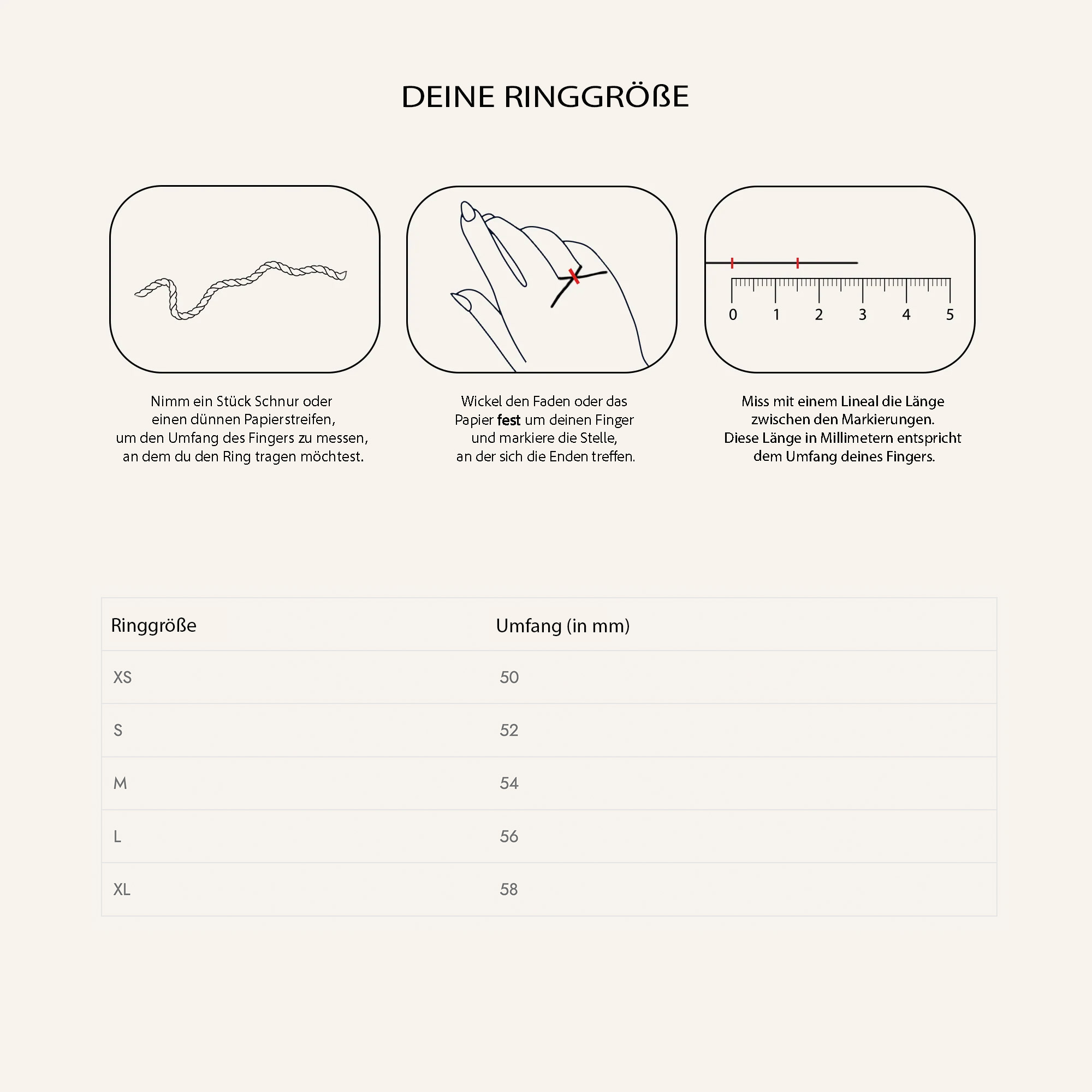 Mit einer Breite von ca. 5,0 mm und einem angenehmen Gewicht von 2,80 Gramm liegt dieser Ring spürbar wertig am Finger – solo getragen oder als Highlight im Ringstack. Liebevoll verpackt in einem edlen Schmucketui, wird er zu einem stilvollen Begleiter für Alltag und besondere Anlässe.