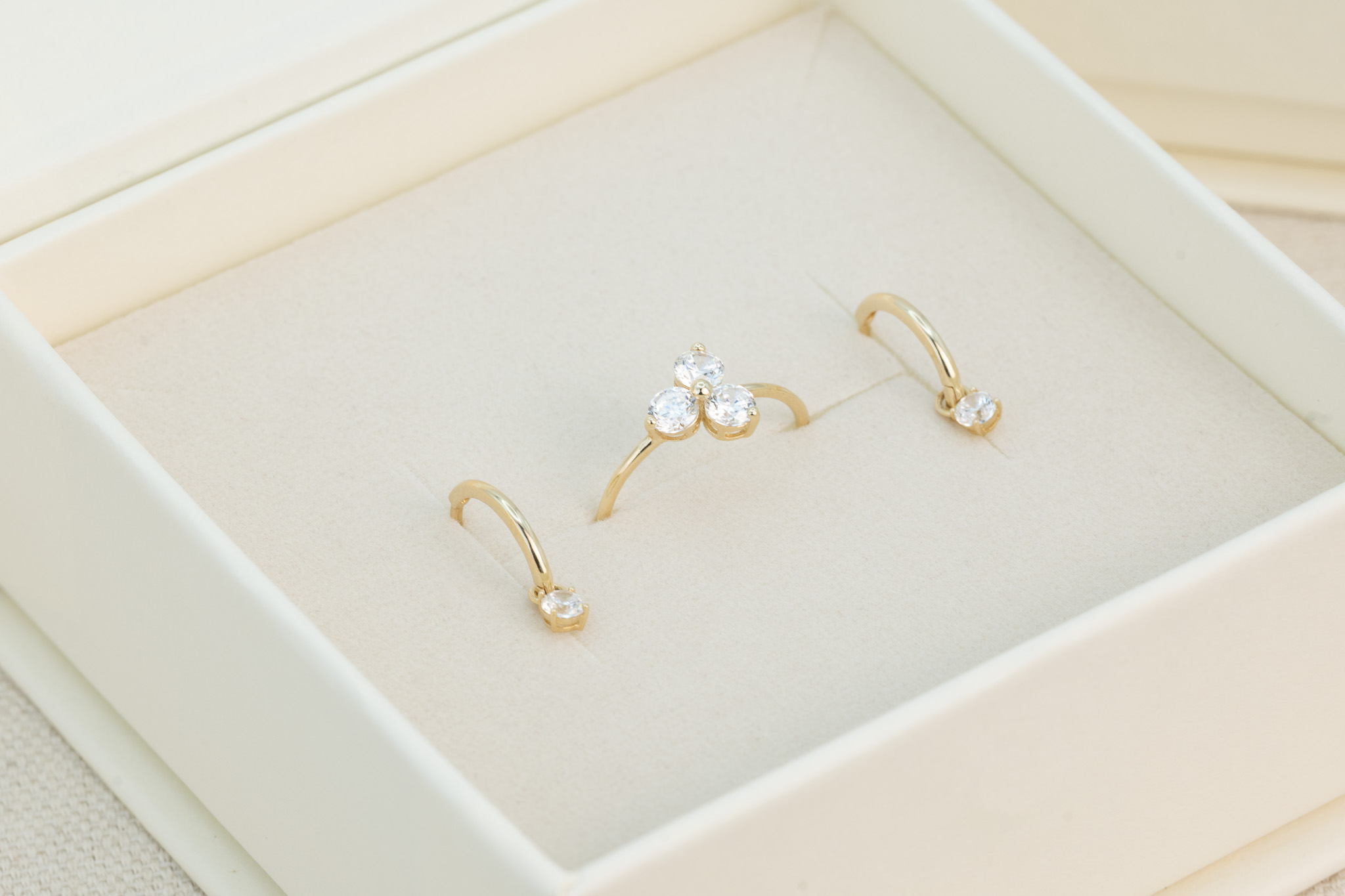 Ring mit 3 Zirkonia – 14 Karat Gold